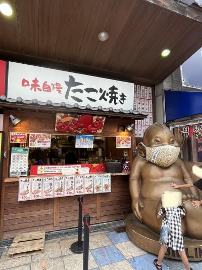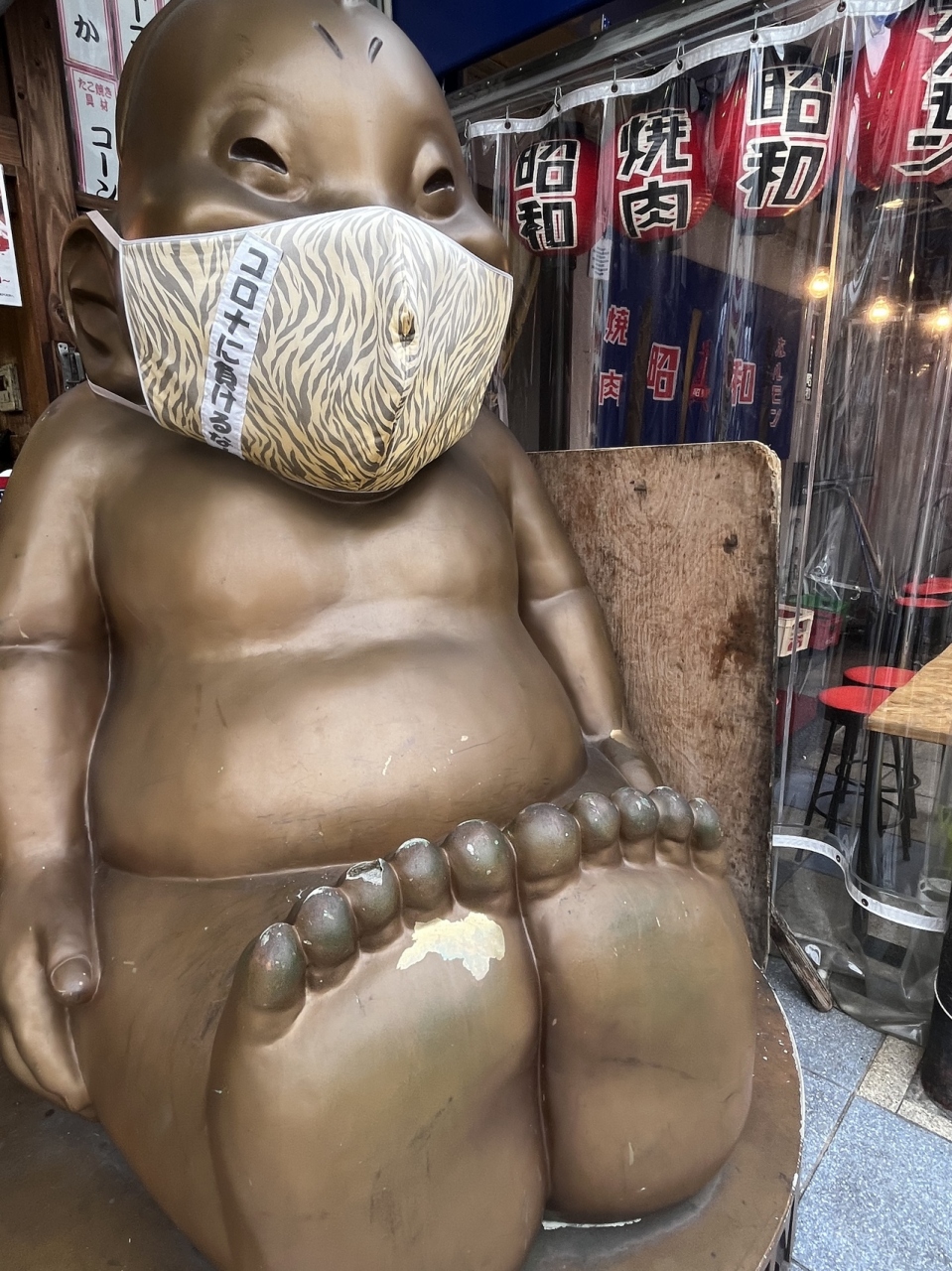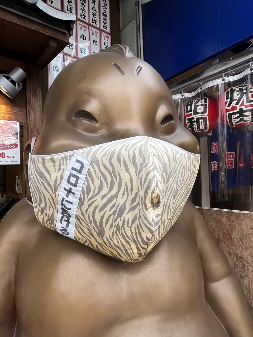 そして 巨大な「ビリケンさん」が マスク姿で お出迎えしてくれます(^^)- 旅行時期