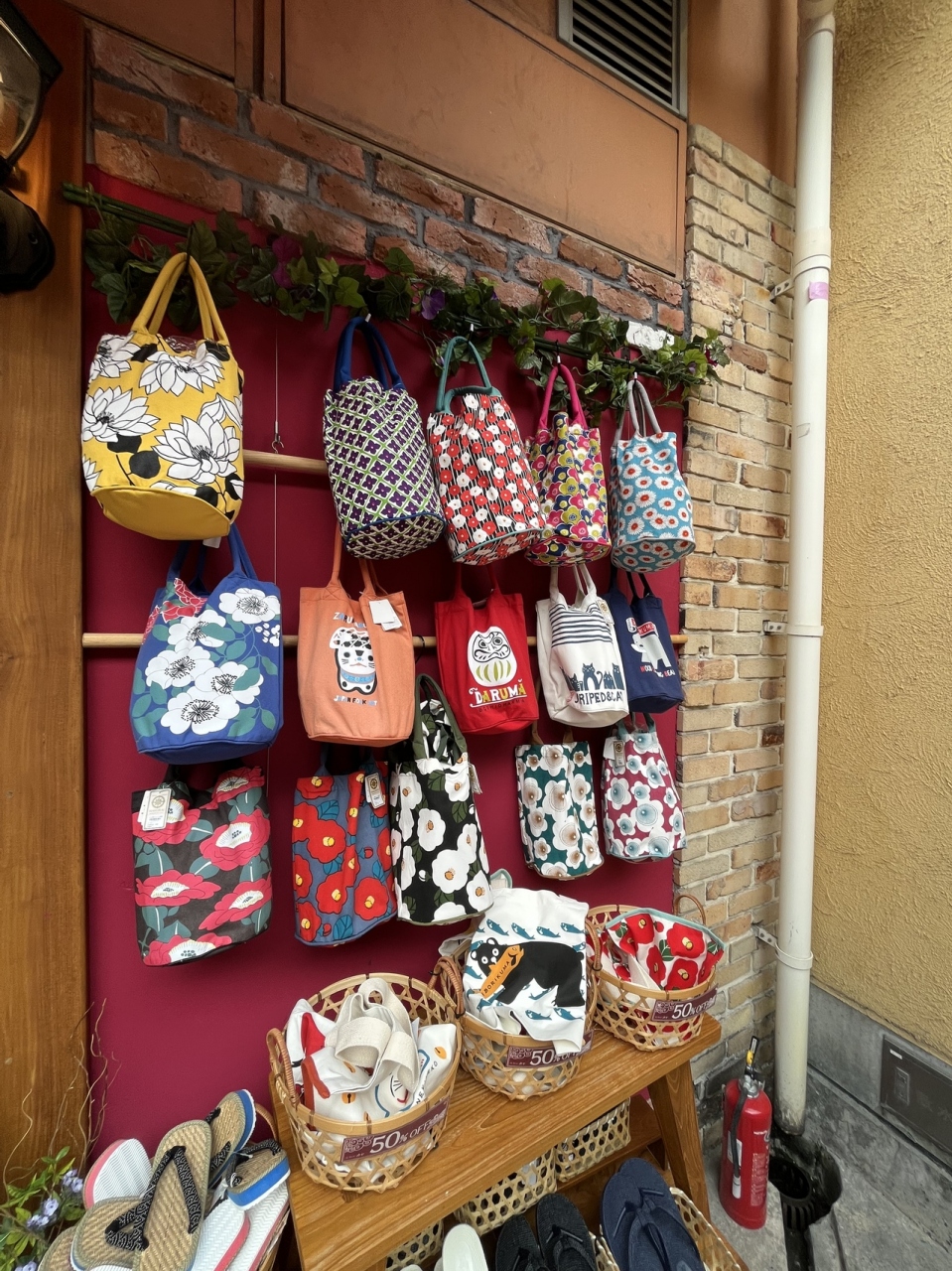 バック・足袋ソックス などなど…色とりどりの和雑貨が並び、