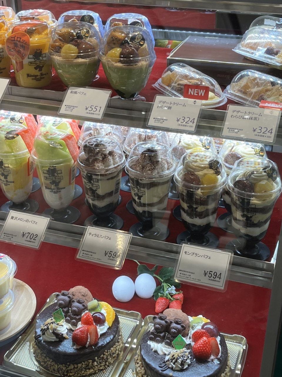 店内には キラキラしたパフェが並び どれも美味しそうです。