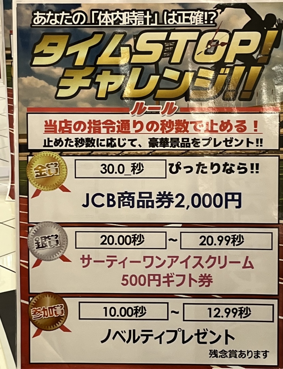 体内時計の秒数で 商品をプレゼントというイベント 開催中でした。