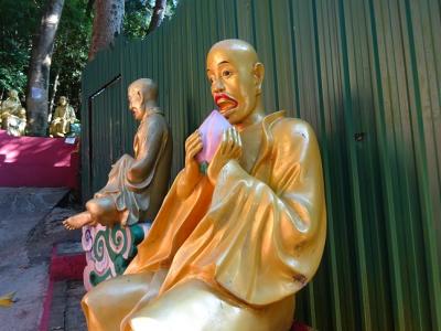 前回の香港で初めて行って感動しました。再訪です。地下鉄「沙田」駅のバスターミナル側の改札を出ると目の前がバスターミナル。左に行くと突き当りが長いスロープになっていて、左手に公園が見えてきて前にはミニバス乗り場があります。IKEAビルが前方に見えるのでその横側から「ここから?」というような細い薮に入るとすぐ黄金の仏像が出迎えてくれます。何度行っても飽きません。五百羅漢さんです。