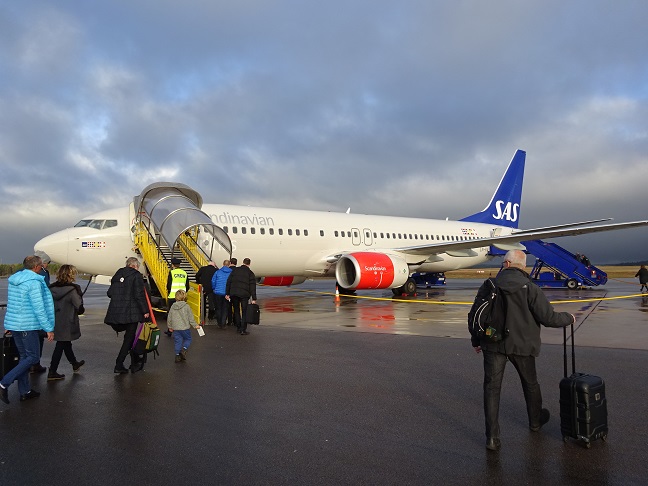 外国の田舎の鉄道駅のような小さいかわいい空港です。なんだかアットホームでくつろげる。空軍と共同のようで、朝から戦闘機ががんがん飛んでいました。ほとんどがストックホルムとの往復便のようで、結構たくさんの人が乗り降りしていてびっくり。小さい空港ながらちょっとした設備や道具が北欧らしさがあっていい感じです。チケット発券やバッグ預入などもオートメーション化でサクサクです。