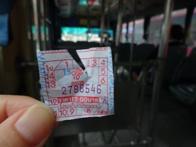 バンコクのバスはかなり複雑でたくさんありますが、旅行者にはハードルが高いです。そして問題は1日中酷い渋滞なのでゆとりがないと使えません。今回は王宮周辺からビクトリーモニュメントの12番バスに乗ってみました。エアコンバスで12バーツ。途中までかなりスイスイだったんですが、高速道路高架超えてあと少しのビクトリーモニュメントが渋滞でなかなか動かず…。しかし費用は12バーツ(エアコンバス)と格安。公共交通機関だとぐるっと回ってチャオプラヤボートとBTS乗継になるので、バスを乗りこなすと便利かなと思います。
