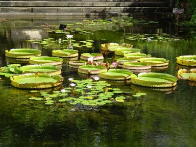美ら海水族館は前回行っているし混雑はなはだしいので、園内の熱帯ドリームセンターへ行ってみました。とてもキレイに整備された花々や庭園は見応えあります。ランの花々には息がつまりそうですが(^_^;)、見事。庭園が美しい。蓮池が絵のようです。人も少ないのでゆっくり鑑賞できます。園内には200円乗り放題の電気バスが10分ごとぐらいに走っていますので(かなりゆっくりですが)便利です。
