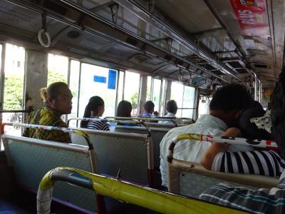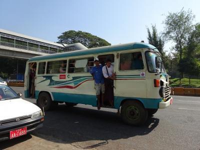 バスの番号も行先もミャンマー文字なので難易度は高いですが、おもしろいです。ホテルがターミナルのスーレーだったので、何度もバスを使いました。使い勝手がいいのが「43番」ミャンマー文字でリボンのような形なのですぐ覚えられます。他のバスも車掌さんに「●●へ行く?」と聞いて乗り込み「●●に着いたら教えて」とお願いします。皆さん親切でした。ものすごくギュウギュウで詰め込みますが、帰って調べたら、運転手と車掌さんは乗客数に応じたコミッション制のようで「もう無理」という状態でも詰め込みます。あとかなり運転は乱暴です。
