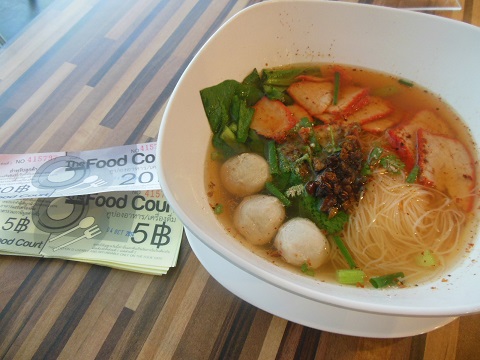 受付でクーポン(10Bと5B)を購入し(金額は自分で好きなだけ)、好きなお店でクーポンで利用します。余ったクーポンは当日中ならリファンドしてくれます。