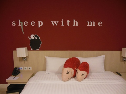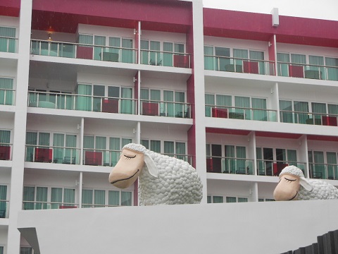 1泊4200円弱で3泊宿泊。場所はジャンクセイロンの南隣で繁華街には非常に便利な場所。200PEE通りから少しだけ奥に入っているので騒音もほとんどなし。羊×赤×白がコンセプトのとてもかわいいホテルで、いろいろ小さいことに凝っています。ただ、タイの南国ムードはなく、デザインホテル、という感じ。