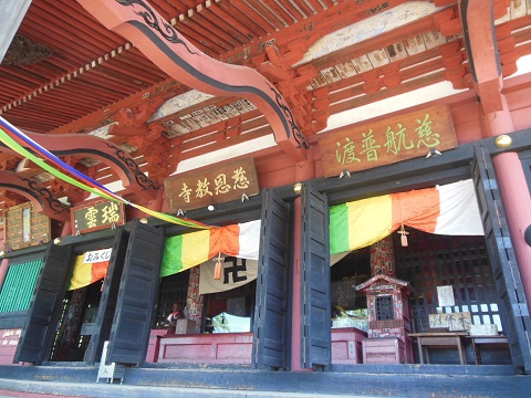 成田山別院ということですが、赤いご本堂が印象的です。北海道なのに、南のほうのお寺のような感じでした。日曜の8時すぎに行きましたが、護摩を焚いておられ誰でも自由にお参りできるとのこと。境内の大師堂には、可愛いカエルの置物がありました。