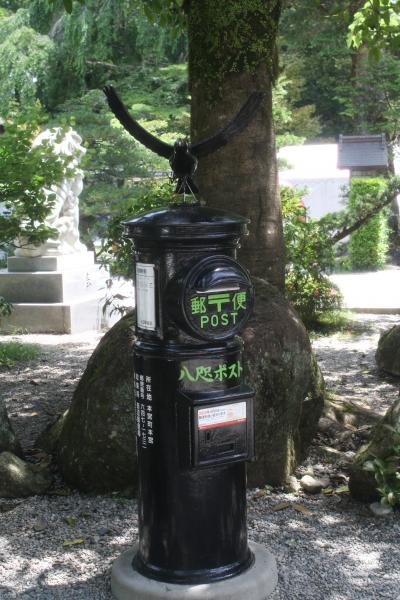 熊野三霊場のひとつで、やはり荘厳な雰囲気がなんともいえない。熊野古道の発心門王子から約7?を歩く人が多いようですが、それほど苦しい道のりでもなく、古代の人々の到達感を感じながら、良いと思います。境内にはヤタガラスの黒いポストが(^o^)。
