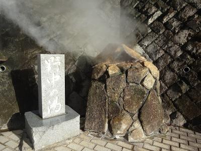 宿泊した旅館から200mぐらいのところでした。湯煙がもうもうとしていて、その前の穴をみると、網があり、そこにたまごのカラがたくさん入っていました。ここで卵を蒸して食べてカラをそのままにしているのでしょうか…