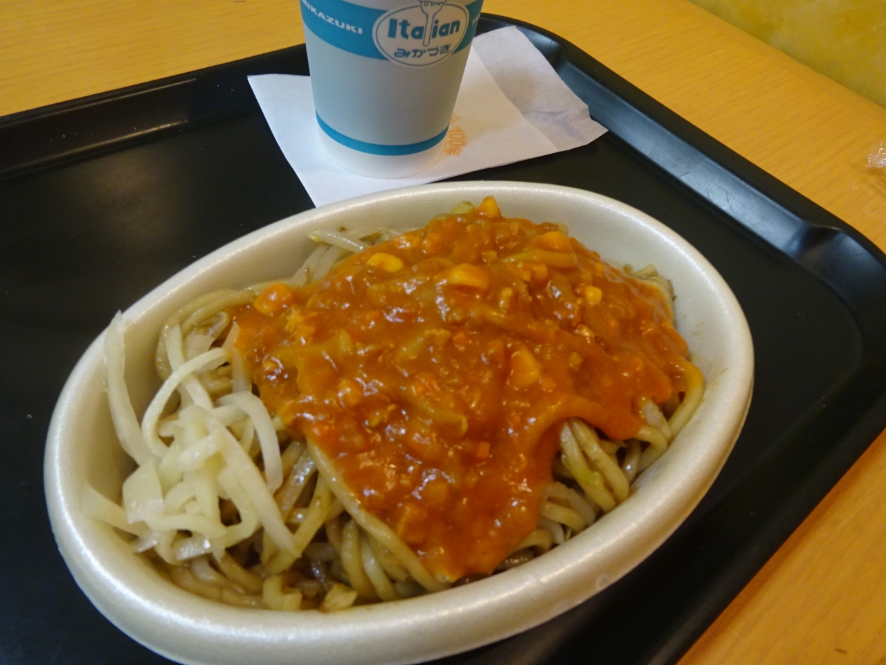 新潟名物、イタリアン、一度食べてみたくて、出張仕事中のランチに行ってみました。万代シティバスターミナルの2階で場所もわかりやすく、思っていたよりちょっと古い感じのファストフード店って感じでした。ともかく安い!イタリアンもカレー味とか何種類かバリエーションがあって楽しめます。オーソドックスなイタリアンとソフトクリームにしてみました。関西人からすると、焼きそばにミートソースというより、焼うどんにミートソースって感じです。麺は結構コシがあり、レギュラーサイズでもおなかいっぱいに。ジャンクフード系ですが、また食べたくなる不思議な味です。