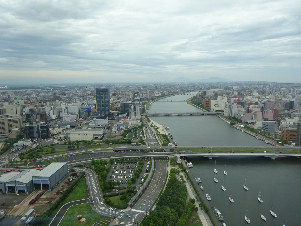 朱鷺メッセの31階の展望台、無料で開放されています。新潟駅から歩くと20分ぐらい。信濃川のほとりにあります。日航ホテルがはいっています。カフェは軽食もとれるし、お土産物も充実。無料で座れる椅子やテーブルもたくさん配置されているので、ゆっくり過ごせます。ほぼ360度見渡せるので、素晴らしいです。