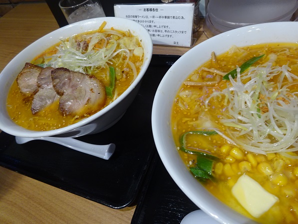 空港到着がちょうど12時頃だったので、手短に空港内のラーメン道場へ。もともとラーメンがそれほど好きじゃないのに、せっかく北海道だからと行ってみましたが、かなりお腹にもたれてしまいました。好きな方はきっとおいしいと思います(味は美味しいけど濃い!)。肉厚チャーシュー味噌ラーメン、バターコーンラーメンと、濃厚なのを頼んだからですが(;'∀')。量もすごく多いです。