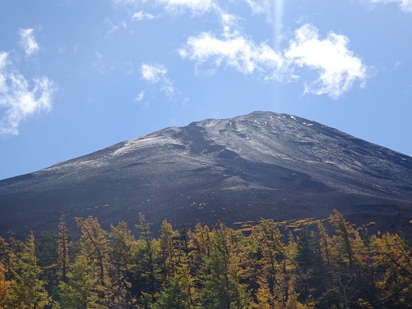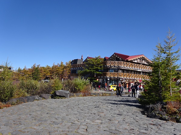 はとバス富士山コースで通りました。台風21号襲来のときだったので(過ぎ去った翌日)、お天気は快晴ながら車の通行が少なく、スイスイと5合目まで行けました。10月下旬なので、紅葉時期と重なり景色が抜群。バスガイドさんも「台風一過なので空気がよくてかなりクリアに見える」とのこと。山頂も下界もホントにキレイに見えました。台風で行けないかもとやきもきしましたが、逆にコンディション抜群な環境で行くことができました。
