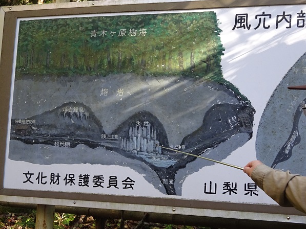 はとバスツアーで富士山五合目のあと、立ち寄りました。青木ヶ原樹海に少し入って、地下に降りていく感じです。10月下旬でしたが、時期的に有名な氷の柱は溶けてしまっているとのことで景観はいまひとつでした。鍾乳洞とは違って溶岩の流れた跡とのことですが、鍾乳洞と同じような感じかも(;'∀')。片道100mほどで折り返します。奥にはヒカリゴケや養蚕がありました。途中2ヶ所ほど天井が低いので、ヘルメットも貸し出しています。気を付けた方が良いかと。