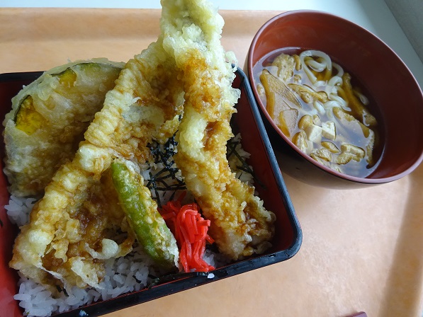 仕事で何度か立ち寄っている都庁32階の職員食堂ですが、一般人も利用できます。以前から厳しくなったかのようで、32階に立ち入るには1階のセキュリティで申告してネックストラップ着用となっていました。かなり広い食堂です。窓際からはスカイビュー。食券購入で、安くランチが食べられます。訪問日はお勧めランチ、アナゴの天丼とけんちんうどんセット、なんと690円。大きなアナゴ天ぷらがふたつも(◎_◎;)!とってもお得です。