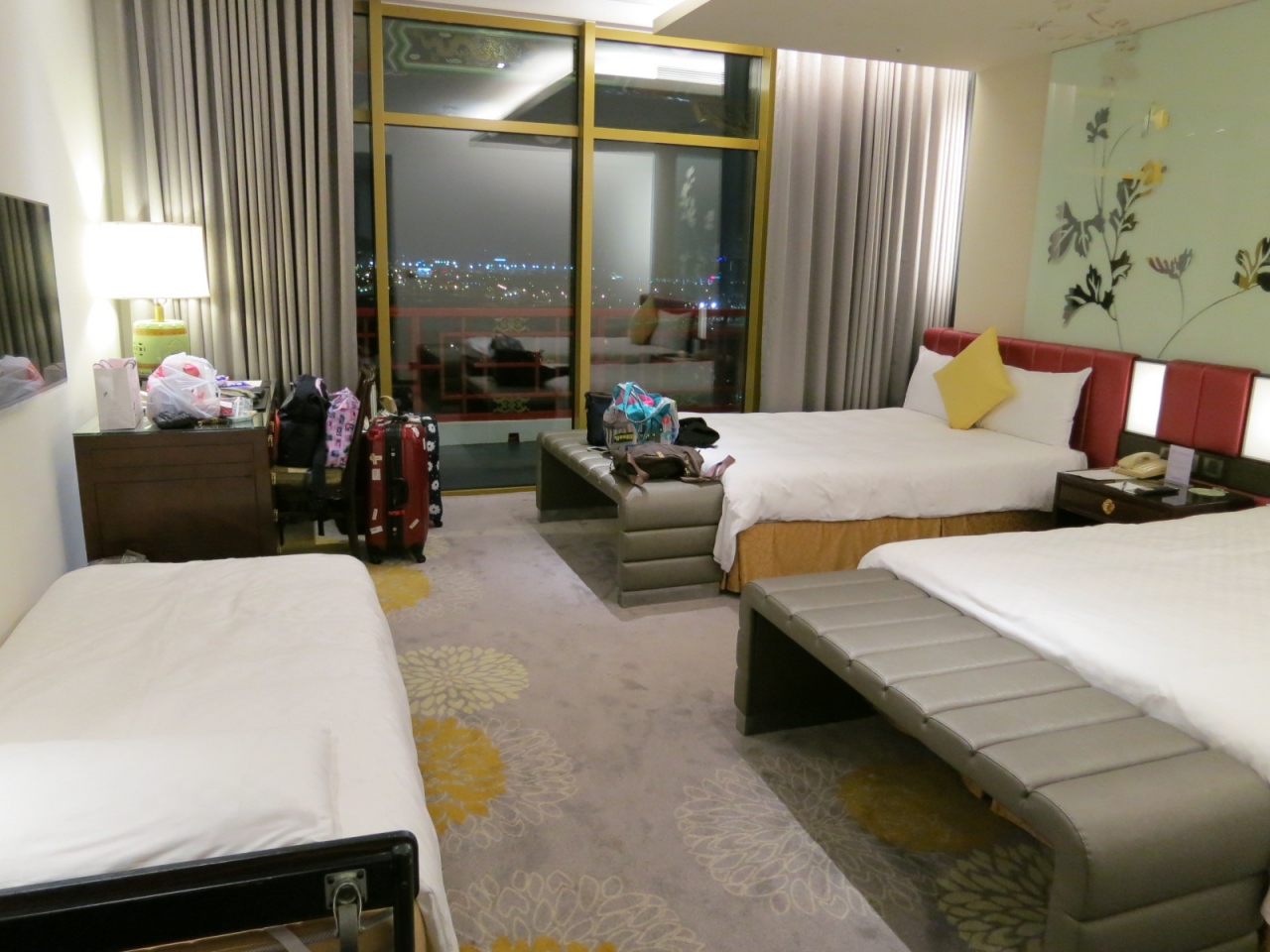 ベッド3台あるし、喫煙OKだし、思わぬことにみんなとても喜んでいました。それに38階ということで遠くまで見渡せ景色もよく、夜景がとてもきれいでした。
