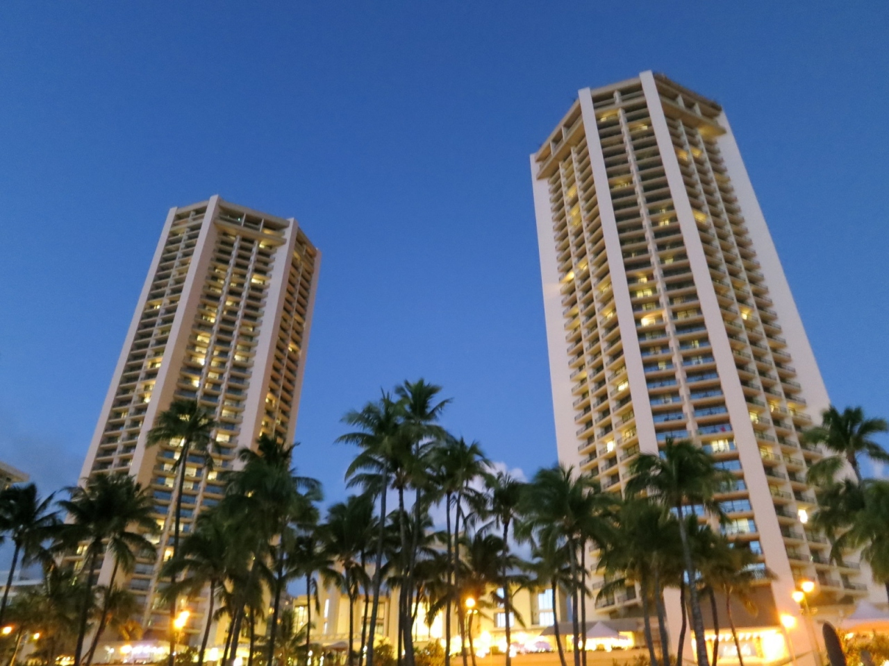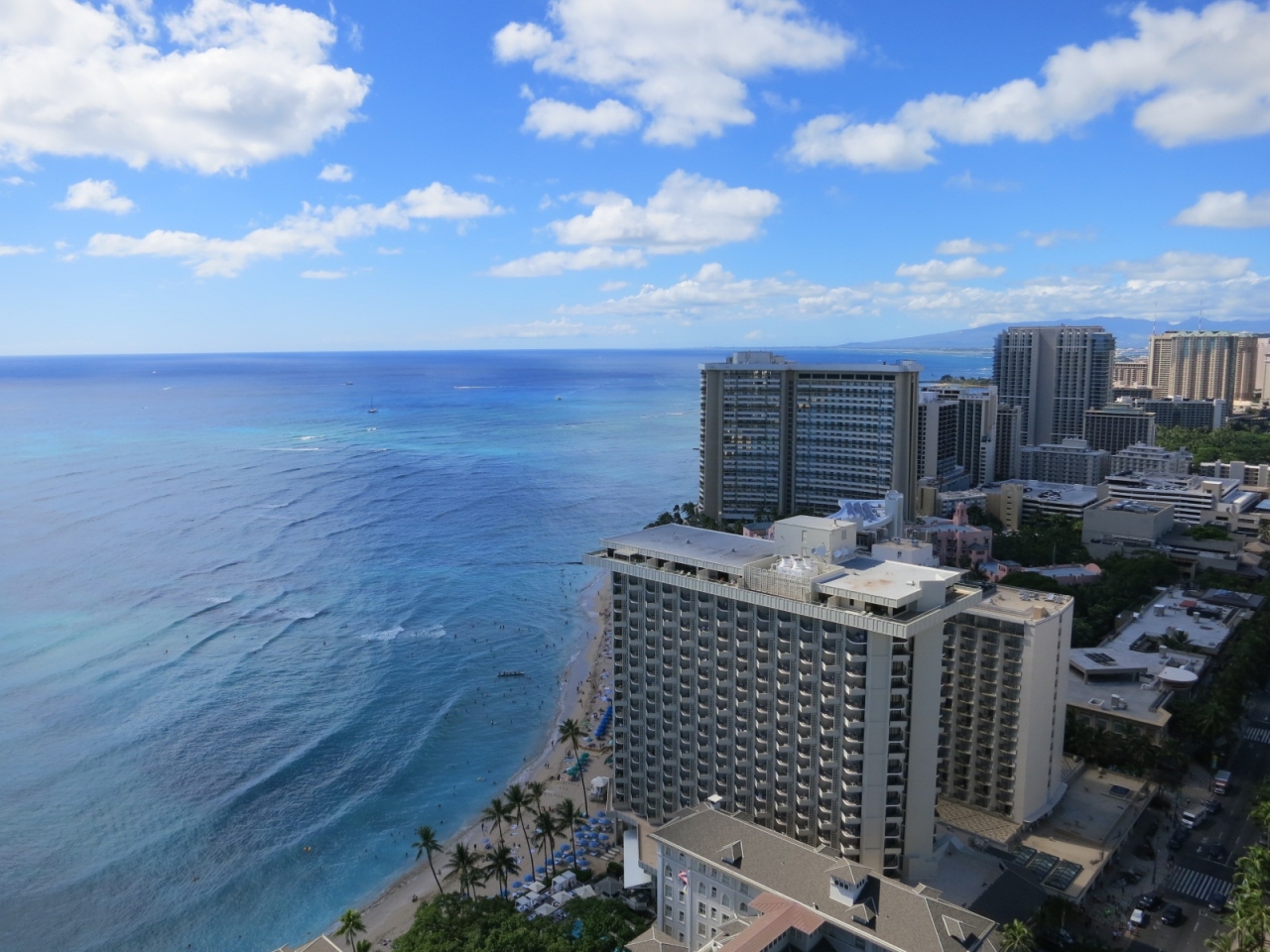 私たちのお部屋はダイアモンドヘッドタワーの1956号室で、ワイキキビーチとモアナサーフライダーが見える、ダブルベッド一つのお部屋でした。