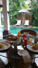 朝食はプールをみながら半屋外の部屋で食べるので、すごくうれしかったです。