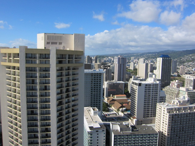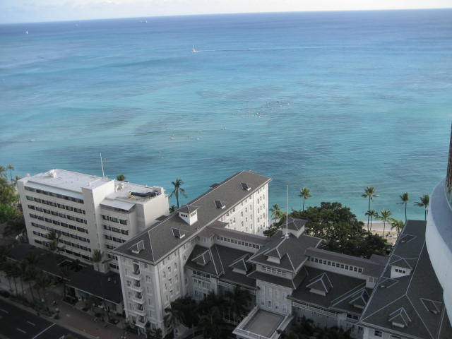 部屋からの景観はタワーではない方のデラックスオーシャンビュー指定だったのでウエスティンモアナサーフライダー越に海が見えるのはなかなか良い眺めでした。
