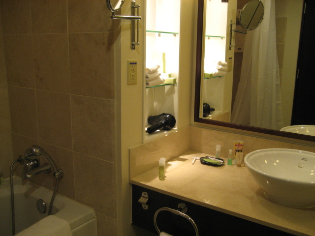 ロビーはラグジュアリー感がありますが部屋はやや古く、水回りは特に古く感じます。バスタブは浅めで寝ころんで浸かるという感じ、ハンドシャワーで水圧はまあまあ。トイレはもちろんウォシュレットではありません。
