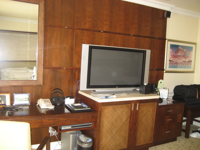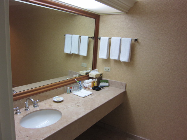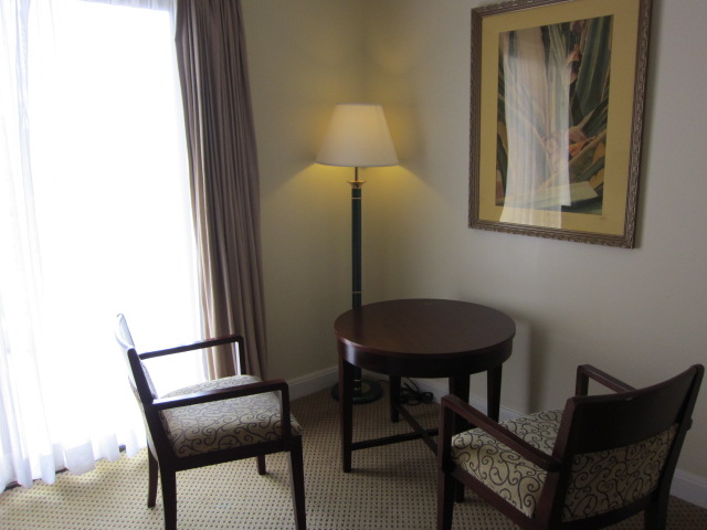 部屋はまあまあ広く足置き付きのソファーとデスク&チェアー。無線LANインターネットはできますが1日約10ドル有料です。クラブラウンジに行けば無料wifiが使用できるのでもっぱらPC持ってラウンジでアクセスしていました。