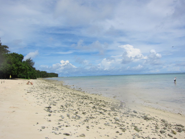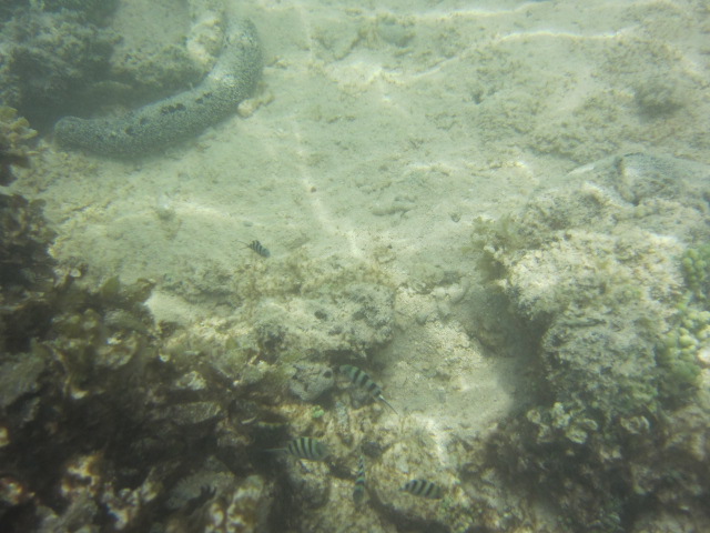 ビーチは浅くサンゴだらけなので魚はいっぱいいます。波もなく穏やかなので小さいお子さんでもゴーグル無しで魚がみれます。