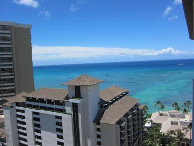 部屋からの景観はタワーではない方のデラックスオーシャンビュー指定だったのでウエスティンモアナサーフライダー越に海が見えるのはなかなか良い眺めでした。