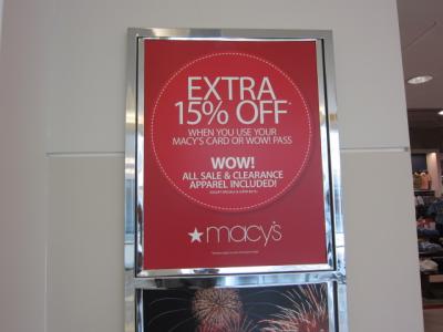 みなさんよく知っておられると思いますがインフォメーションでメイシーズの10%オフカードをもらって下さい。