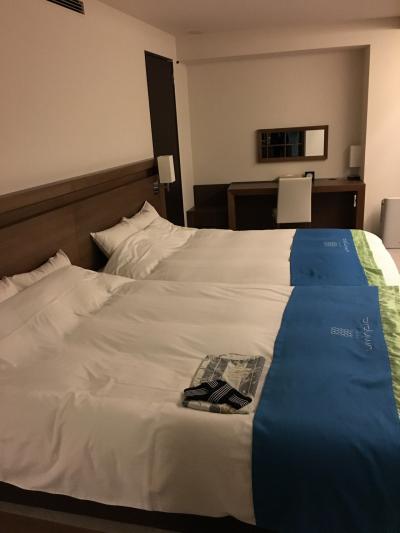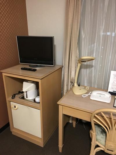 ビジネスホテルだけど、部屋は広く、キレイ。難点は、バスタブなし。
