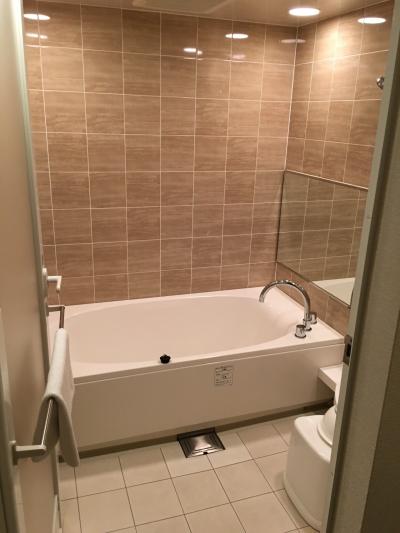 バスタブは、それなりの大きさ。ゆっくりできる。部屋もツインのシングルユースだったので、広く、居心地も快適。ベッドも寝心地よし。