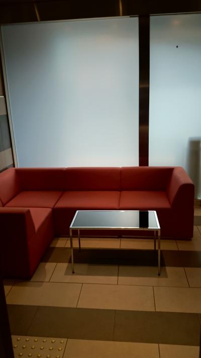 駅前で、便利はいいが、エントランスにびっくり。自動ドアから入ったとこは、壁。右に向くと、2mくらいのところに、2mくらいのところにフロントが。こんにちはって、いきなり明るい声が。ビックリ。ちょっと狭すぎ。フロントの横には、エレベーターが。そして、その前には赤い応接セットが。売り文句は、シティホテルとビジネスホテルの間。それが、ミッドインだとか。