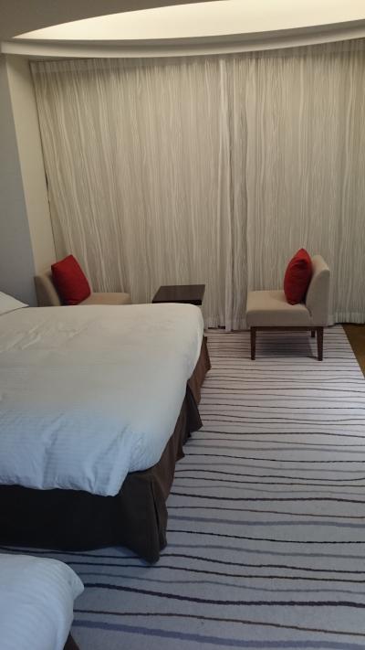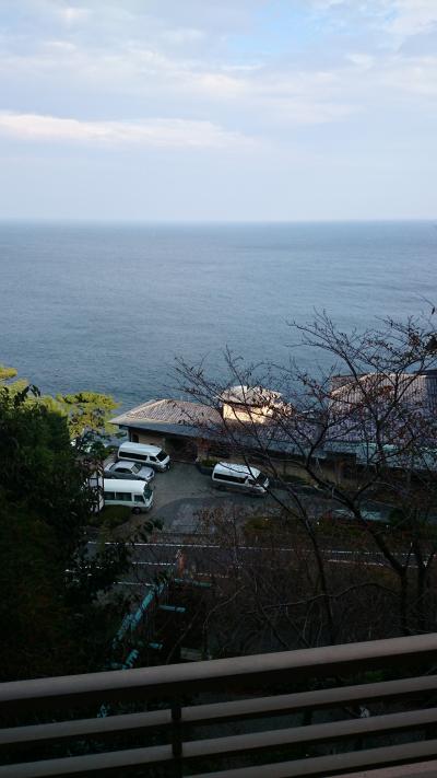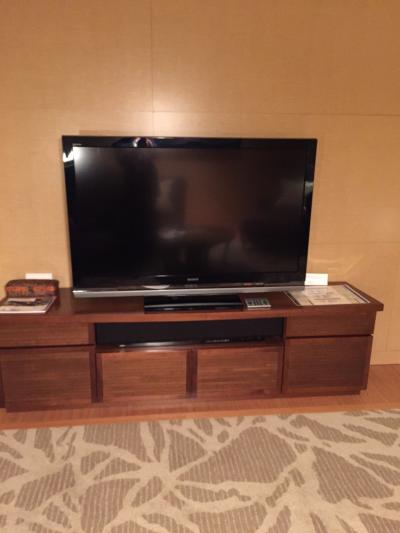 部屋に入ると広い上がり口。広い応接室。そのテレビが、100インチ以上あるだろうか、存在感あり。なによりも、部屋の全面が窓。志摩湾が一望。豪華な景色。ベッドの寝心地もいい。