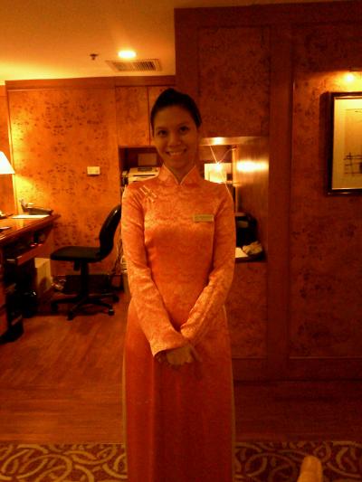 こじんまりしたホテルですが、とってもベトナムらしさが感じられるホテル。渡り廊下があったり、手すりなんんかにも、彫刻がほどこしてあったり。でも、安い。スイートルームが、6千円。なかなかいい感じ。ベットにリネンで作ったハートがあったり、バスもラブラブな雰囲気。ぜひ、カップルで。