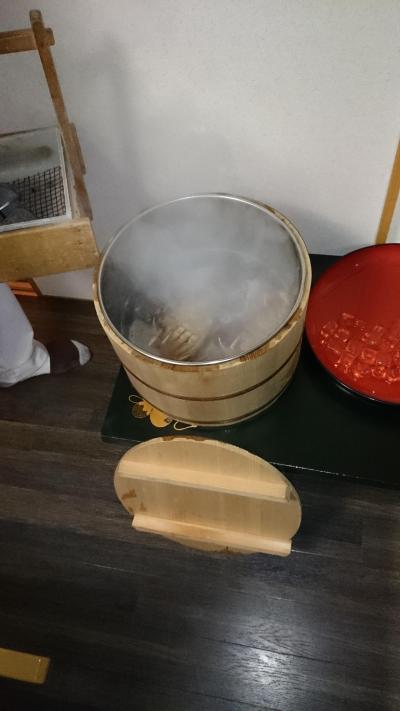 夕食は、味はまずまずだが、年配者には量が多いのと、出す順番に工夫が必要。毛がにが一人に一杯つくのだが、活きてる蟹を桶に入れて、700度に熱したよう岩石を入れて、お客さんの目の前で地獄茹でするパフォーマンス。毛がにだけど、とっても美味しい。でも、残念なのは、料理がすべて出た後で茹であがったこと。こんな美味しいものは、最初に出さなきゃ。