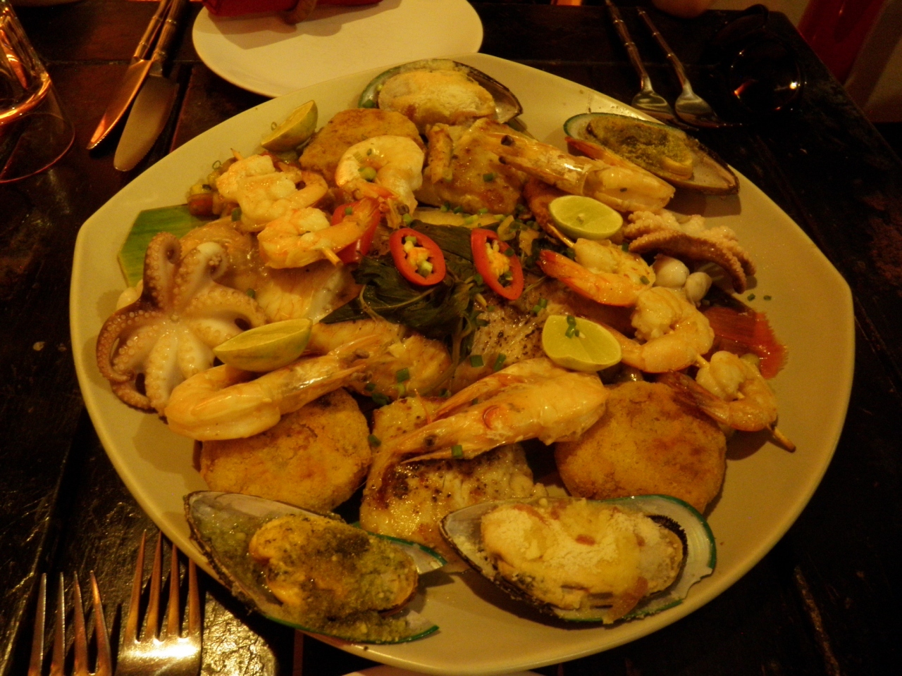 見た目は非常に豪華なシーフードプレートですが味は可もなく不可もなく。