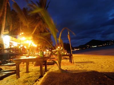一番ビーチに近い席は日が暮れてくると穴に火がたかれて臭いです。