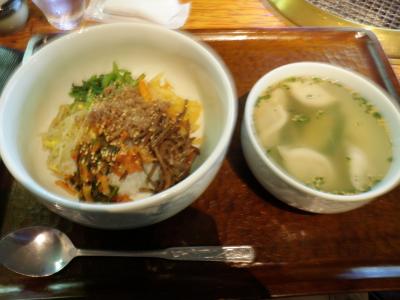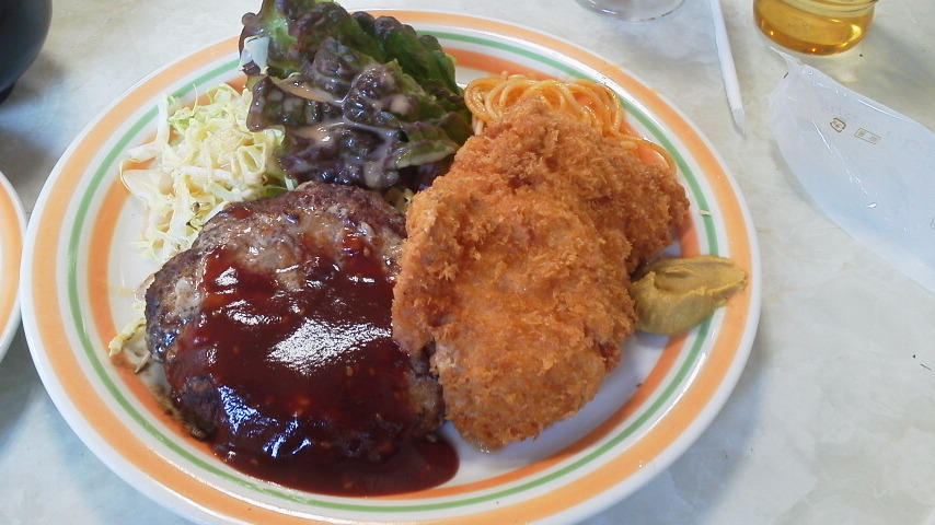 夜でもやっているランチはメインのおかず2品、山盛りサラダ、デザート、ドリンクがついて850円ととってもリーズナブルです。特にメインのおかず2品は普通の店では1人前ぐらいの量なので実質2人前食べるぐらいになります。