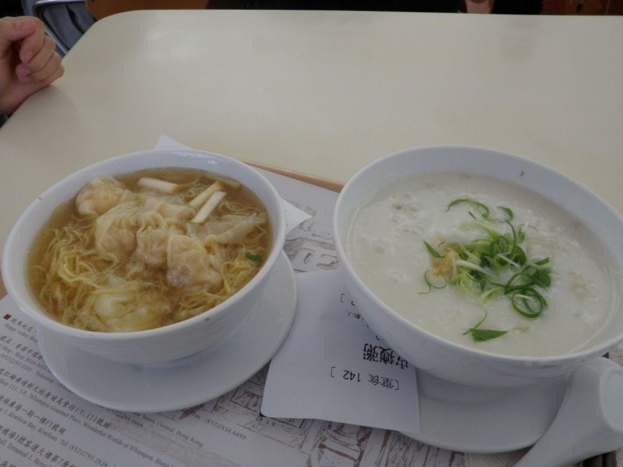 皮蚕痩肉粥と蝦ワンタン麺を注文しましたが、どちらもイマイチで期待はずれでした。
