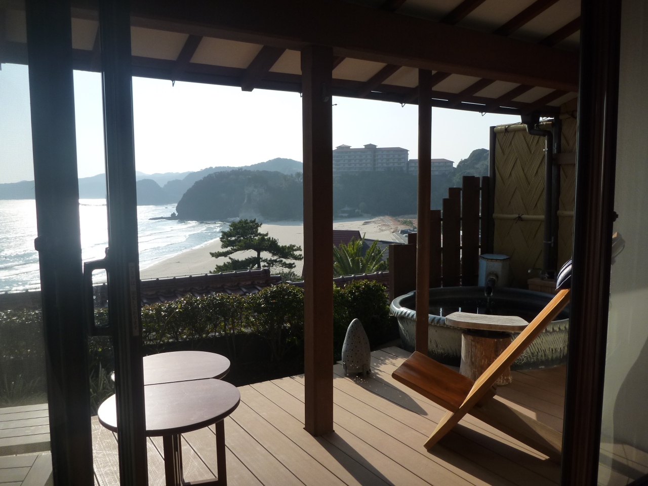 部屋:和室プラス洋間テラス、露天風呂付き広い外テラスで2人だと広いです。アメニティもしっかり。露天風呂に続く内シャワー有。もちろんオーシャンビュー。