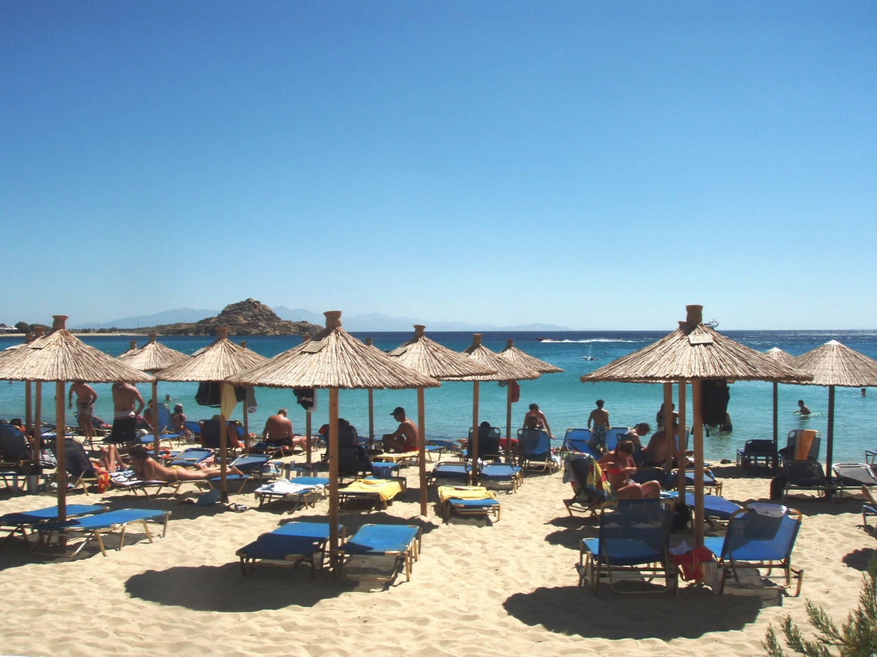 今回行ったミコノス島3つのビーチの中で、一番の透明度でした。タベルナ数件、ショップが少しの落ち着いたビーチでした。パラソルは一番高くて10ユーロ。