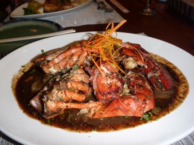 ひと言:誕生日のディナーで利用しました。輸入物でもどうしても大好きなロブスターを食べたくて、ここを選択。水槽からロブスターを選んで、料理法を選択。私達はキッチンから魚貝を選択、料理してもらいました。2人で130ドル。誕生日だと話したら、スタッフが歌をうたいながら、ケーキを持ってきてくれました。みんな感じがいいし、雰囲気もいいし、おいしいしおすすめです。- 旅行時期