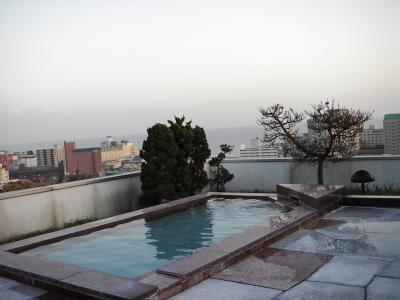 ちょっと安めだったので、正直あまり期待していなかったのですが、部屋はまずまずだったものの、夕食、朝食ビュッフェが非常に充実していてお値打ちホテルでした。写真は露天風呂です。