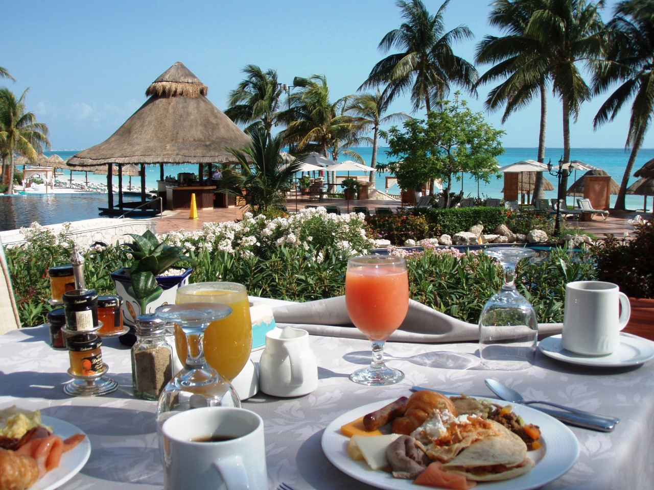ひと言:6:30-12:00までの朝食ビュッフェ(アラカルトも有り)。チョット暑いけど、やっぱり外がおすすめ。素敵な眺めで、リゾートに来た~って感じが味わえます。対応も素晴らしいです。内容もメキシカン、日本食、アメリカンと種類豊富で味もGood。- 旅行時期