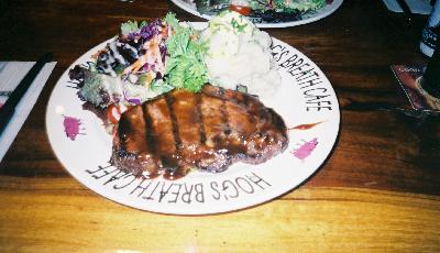 ピンクの豚が目印のリブが売りのレストランです。地元の人から聞いて