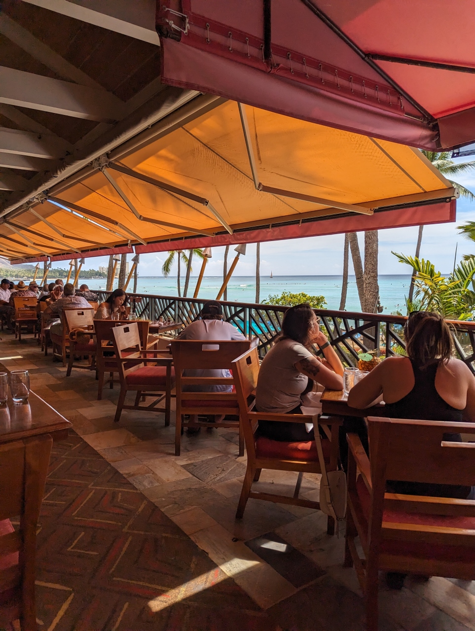 ワイキキ外れ、動物園前のクィーンカピオラにホテル内にあるレストラン。テラス席はダイヤモンドヘッドと海がのぞめて素敵です。ただシャワーやスコールがあると否応なく店内席になる、その魅力は半分以下に。特に夜は何も見えないということに。お料理は普通、サービスも悪くはないですが、店内広いので行き届かないことも。店内席になることも想定すると、デイタイム-サンセット頃までがおすすめかも。