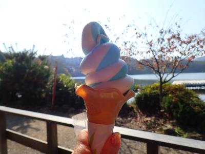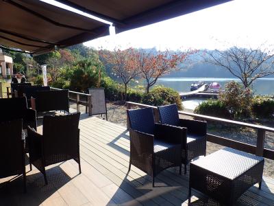 ホテルチェックインまで時間があったので、かなり久々に一碧湖に行きました。昔行ったときは確か売店みたいなものしかなかったですが、ガイドブックでウッディーの素敵なカフェができていたのを知り、コーヒーでも飲もうかと。写真通りウッドデッキが素敵なカフェでした。軽食もあるので、軽いランチなら可能です。名物とされていたのは青いソフトクリーム。いただいてみましたが、味はフツーのソフトクリームでした!