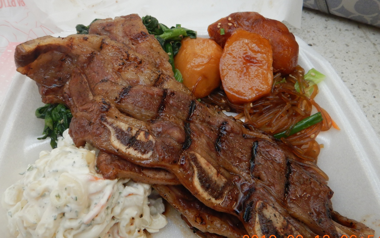 我が家のマストです。前はクヒオ通りやロイヤルハワイアンセンターにもあったのですが、今は行きやすいところはここだけになりました。ビーフ、チキンなどいろいろありますが、私は一番カルビが好きです。レギュラーとミニがあります。またライスをおかずにチェンジすることも出来ますよ。
