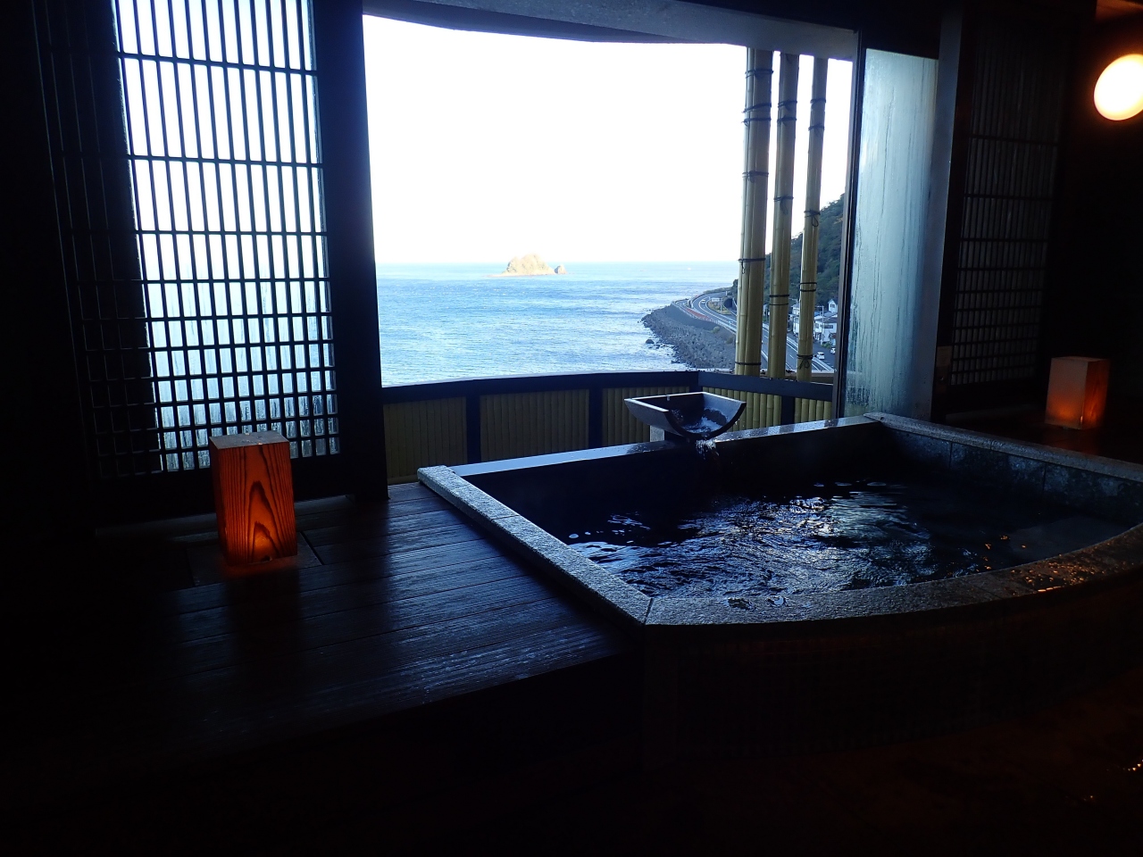全室露天風呂付、オーシャンフロントホテルです。2回利用しましたが、接客と心遣いはパーフェクトです。フリーでスパークリングワインなどいただける時間帯が数回あり、そのたびに素晴らしい景色を眺めながらいただけます。料理もおいしいです。唯一0.5のマイナスは、売りの貸切り風呂が混んでいる時期は争奪戦になること。それさえなければ、満点です。