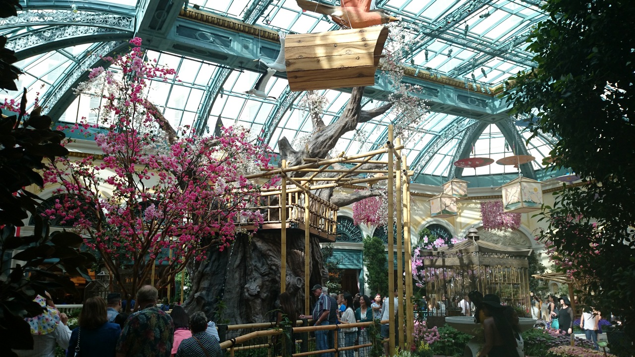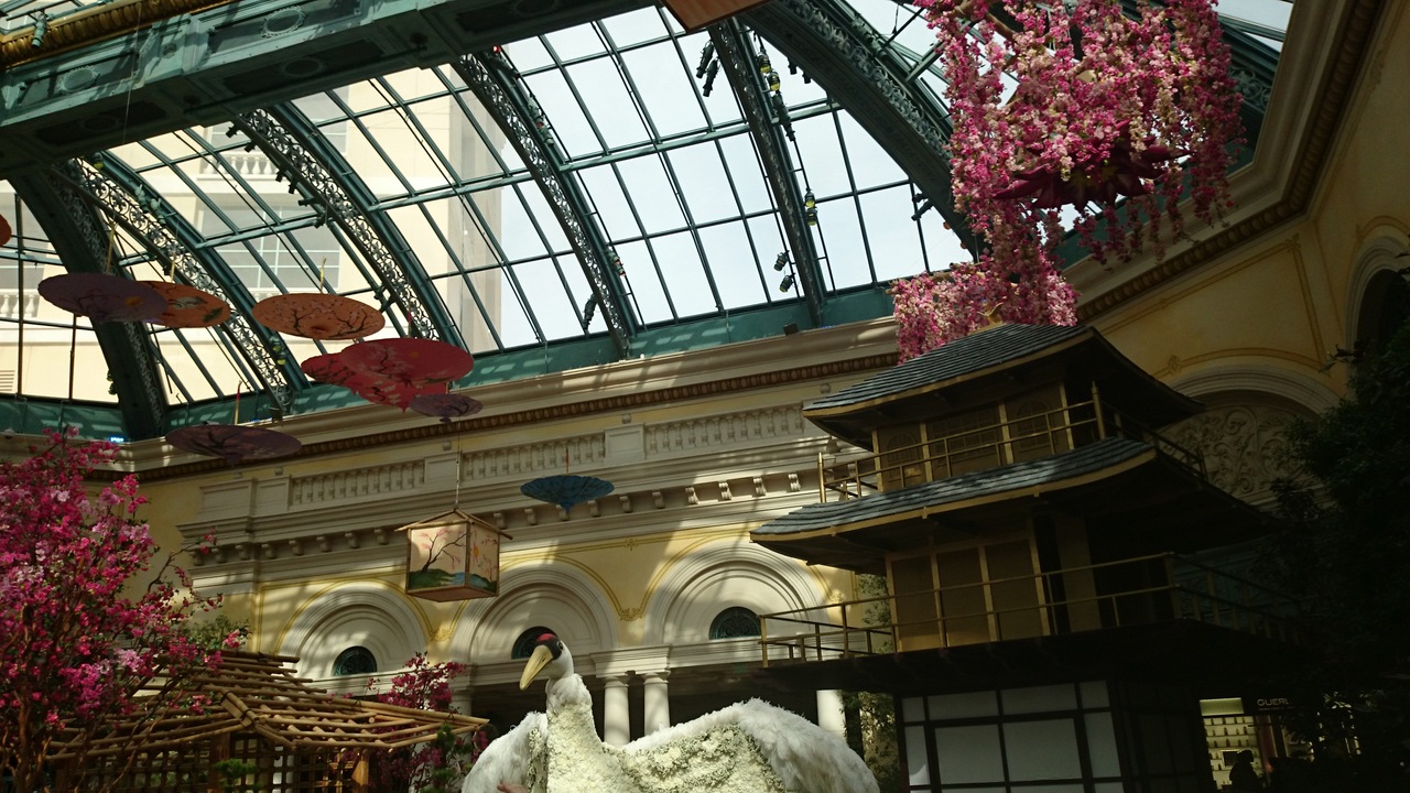 久しぶりにストリップ散歩に繰り出しました。イースターサンデーで かなりごった返していましたが 途中で寄ったベラージオガーデンには 桜が咲いていたり、大きな鶴がいたり、三重の搭があったりの春爛漫仕様で 和みました。